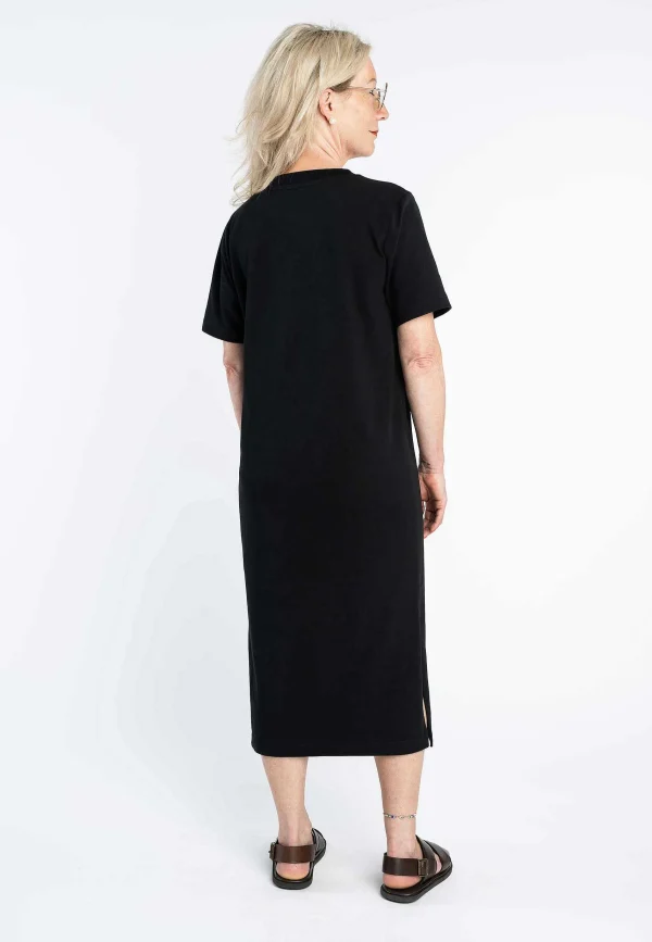 Ein Cleaner, Lässiger Style Für Wärmere Tage. Das Fast Knöchellange, Kurzärmlige Kleid Besticht Durch Einen Fließenden Fall Und Besitzt Schlitze An Beiden Seitennähten. Durch Die Kühlende Baumwolle Bleibt Es Atmungsaktiv Und Der Schwere Jerseystoff Sorgt Für Einen Modernen, Wertigen Look.